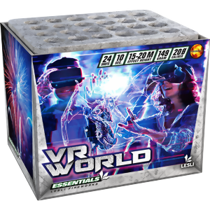 Dieser 24 Schuss Pyromould® Cake versetzt Dich in eine virtuelle Realität; einfach fantastisch anzuschauen. Wunderschöne Brokade Crown mit rotem Glittering, tiefblauen Stars und blauem Tail.