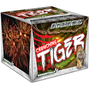 Sehr große 36 Schuss Batterie wobei goldene Palmen, immer versehen von subtilen silbernen und roten blinkern, sehr laut explodieren. Ein Kunststück!