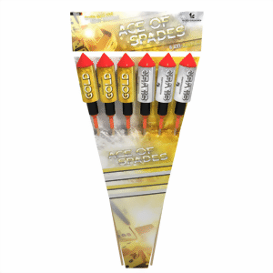 6 Maximal gefüllte Raketen mit lautem Burst-Knall. 3 Stück in Silber und 3 Stück in Gold ausgeführt. Spitzenqualität!