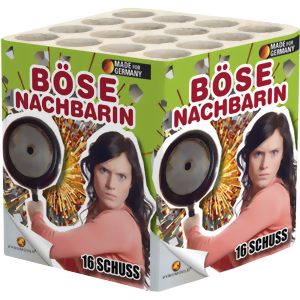 16 Schuss Batterie mit roten und grünen Sternen mit Crackling.