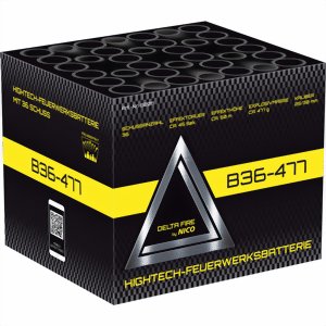 Alle Profis und Freunde des Hightech Feuerwerks aufgepasst! Die neue NICO Delta Fire B36-477 Batterie hat 36 Schuss, die in wechselnder Schussfolge mal schnell und einzeln goldene Feuertöpfe mit gold-aufsteigenden Leuchtsternen schießen. Anschließend folgt eine Verwandlung zu Brokat-Kronen, Time-Rain-Effekten, farbigen Blinksternen oder umherschwirrenden Stern-Würmern. Das Finale begeistert mit einer Wand aus Gold-Chrysanthemen-Effekten.