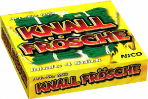 Schachtel mit 4 umherspringenden Knallfröschen.
