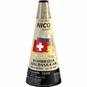 Der SCHWEIZER GOLDVULKAN sorgt für den Glanz und die Magie eines wahren Feuerwerks! Seine goldenen Funken und Sterne erheben sich bis zu 6 Metern in die Luft und versprühen ein einzigartiges Farbspiel. Ein unvergessliches Erlebnis!